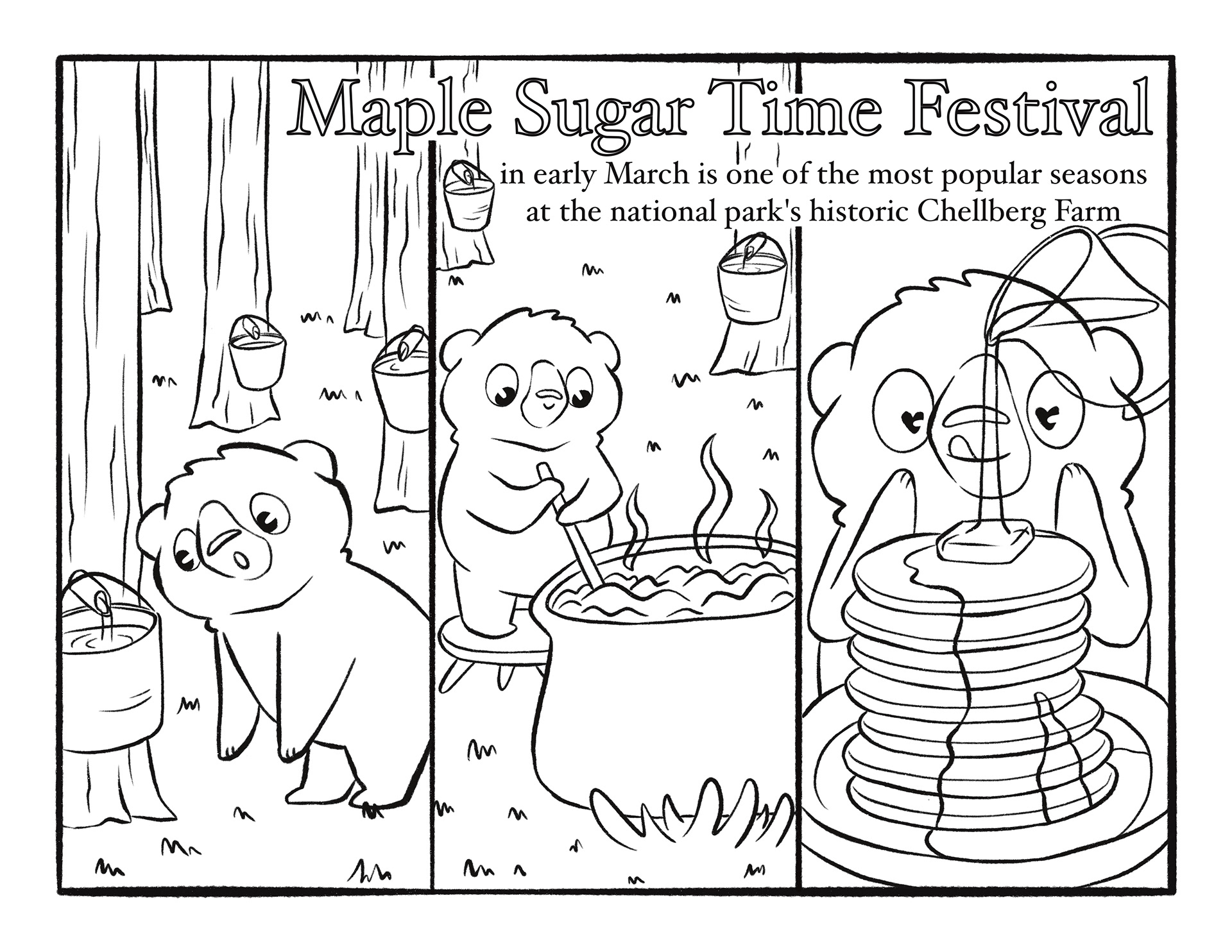 Toby postcard and activity pages, featuring a different location each month.